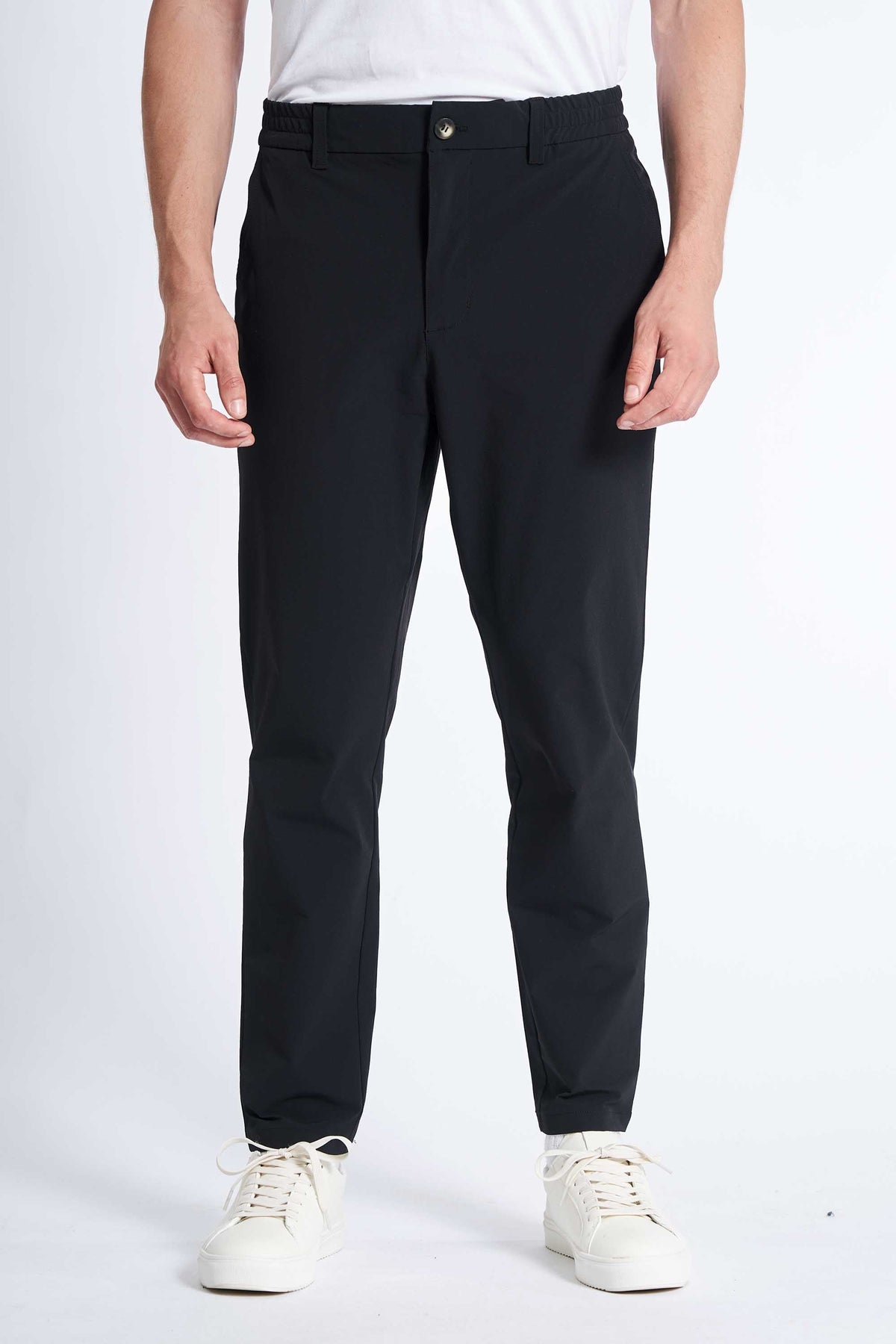 Det rene design kombinerer funktion og stil med elastisk linning, skrålommer og et moderne, tilspidset snit – perfekt til dig, der ønsker bukser, der både kan bruges på kontoret og i weekenden.