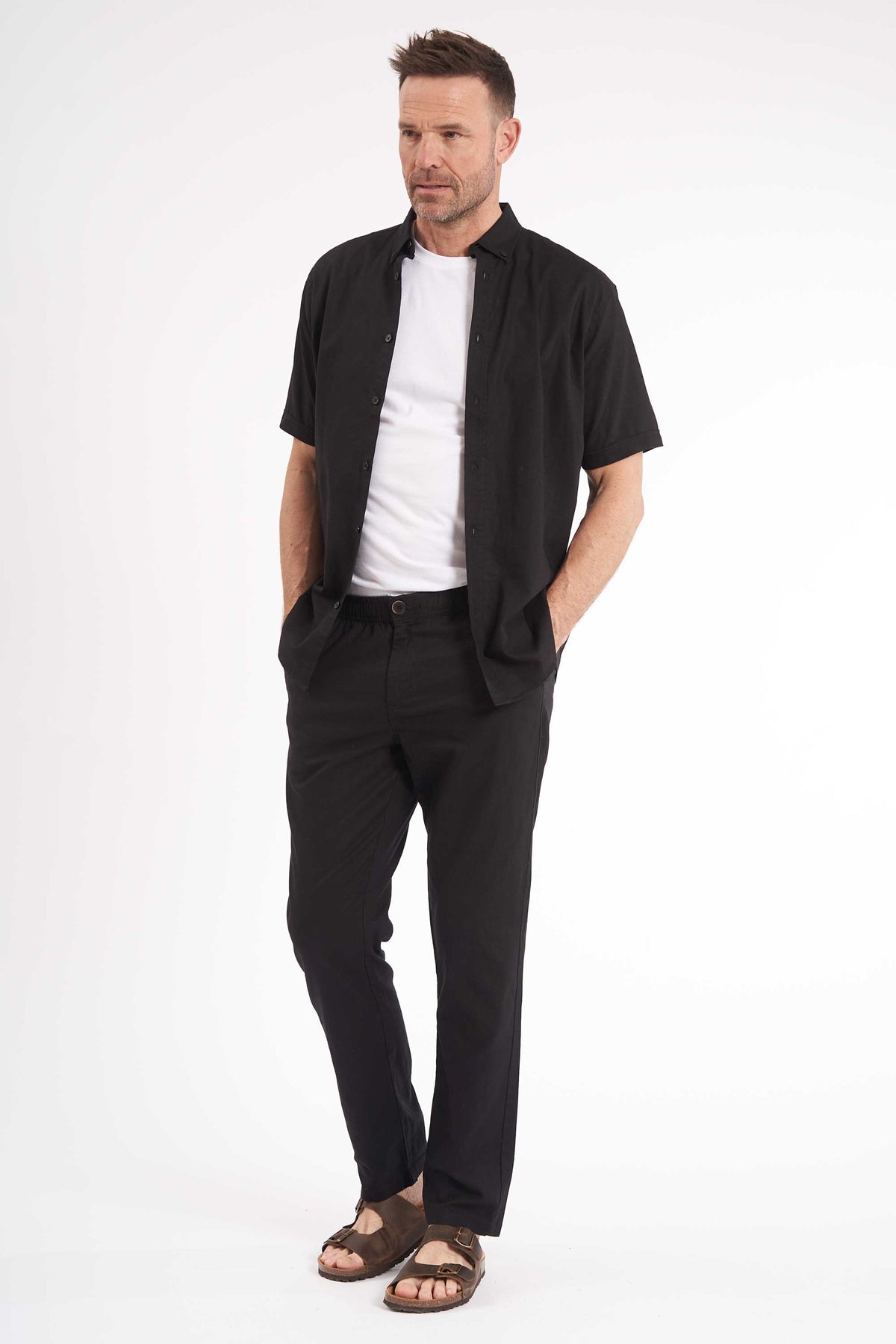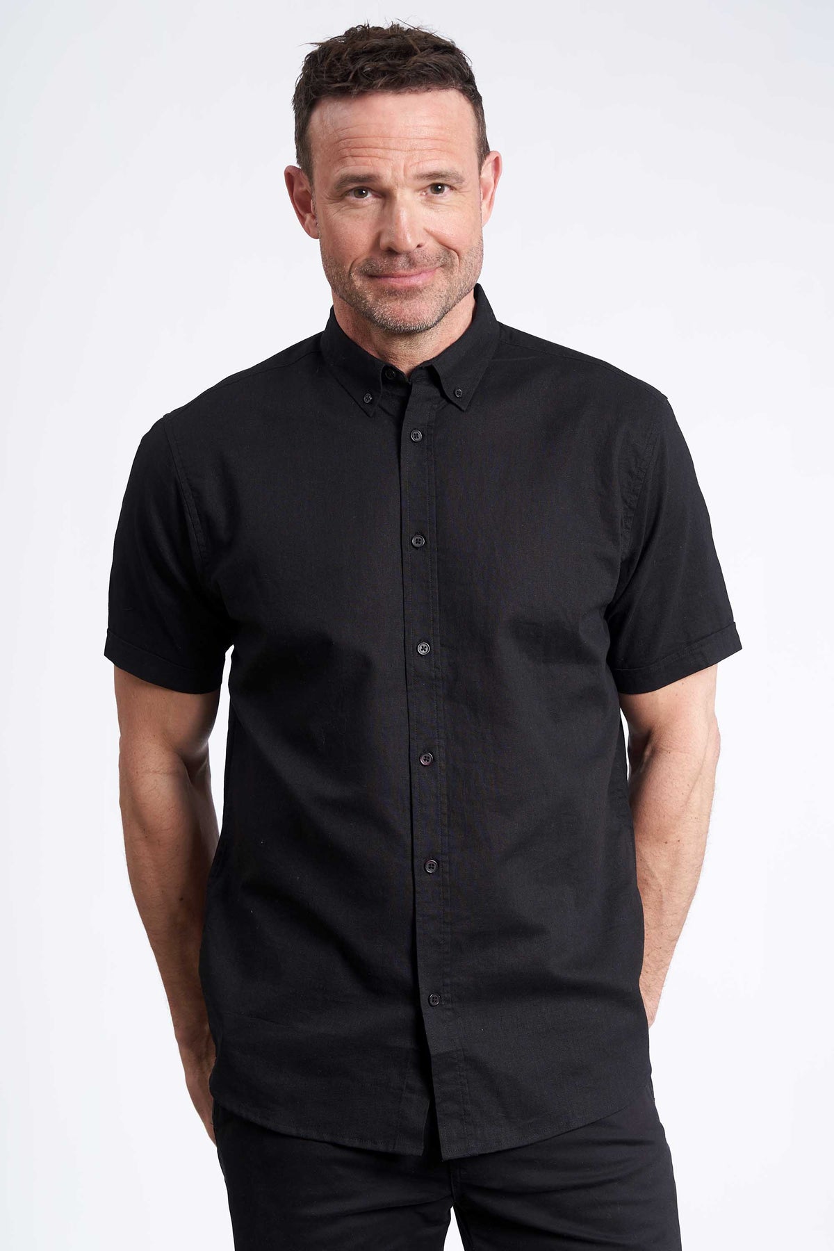Opgrader din sommergarderobe med Valder – en let og åndbar kortærmet skjorte, der kombinerer afslappet komfort med et stilrent udtryk. Skjorten er fremstillet i en eksklusiv blanding af hør og bomuld, som giver en naturlig struktur og en behagelig følelse mod huden – perfekt til varme dage.