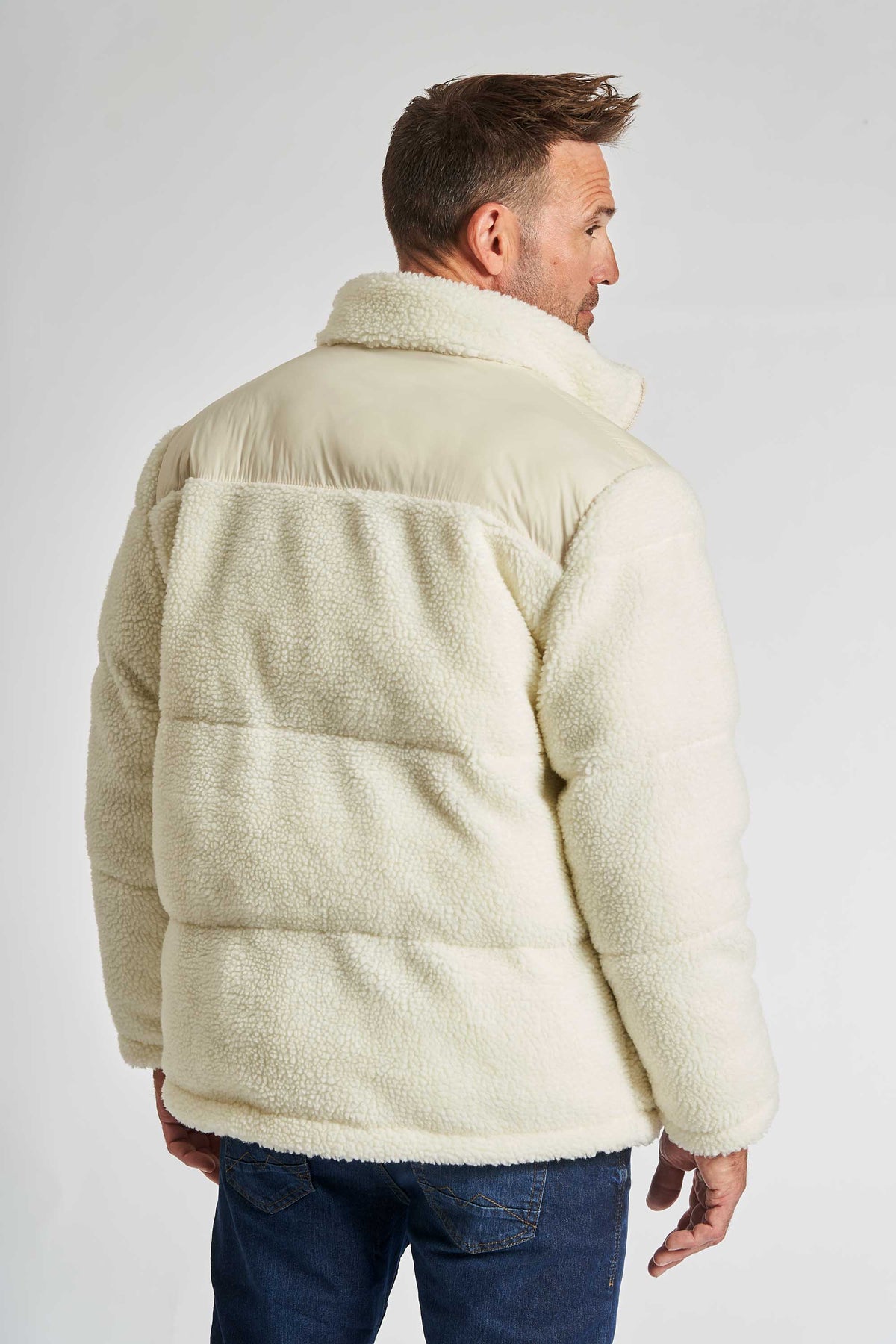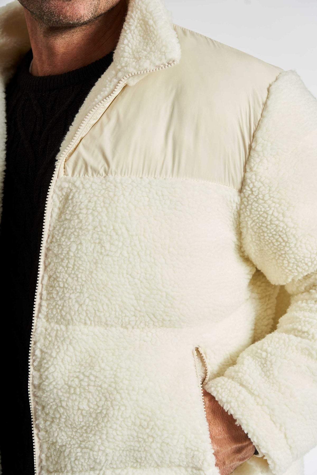 Jakke 'Marslev' i Whitecap Gray er en moderne og varm sherpa-jakke, der kombinerer komfort og stil. Den bløde teddy-kvalitet giver et afslappet og casual look, mens de glatte kontrastpaneler ved skuldrene tilfører et sporty og eksklusivt twist. Perfekt til de kolde måneder, hvor du ønsker en jakke, der både holder varmen og ser skarp ud.