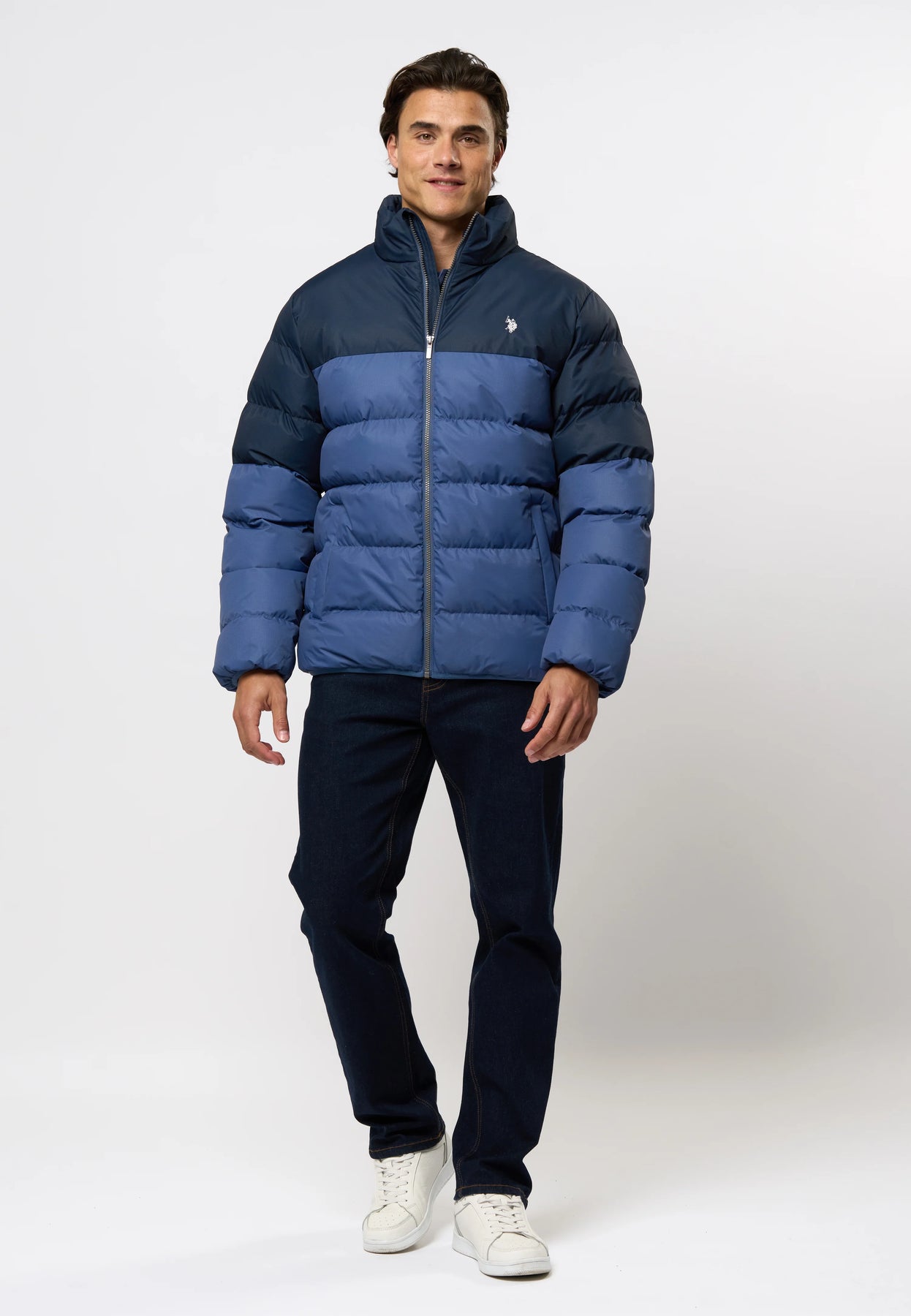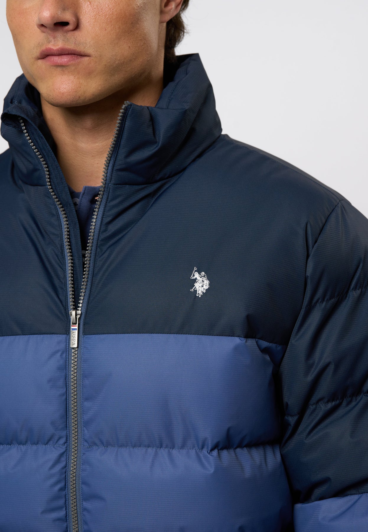 "Aleks" er en varm og funktionel vinterjakke designet til kolde dage, hvor både komfort og stil er i fokus. Det brede quiltede design giver jakken et voluminøst, men stilrent udtryk, mens de todelte farvepaneler tilfører et sporty og moderne look.
