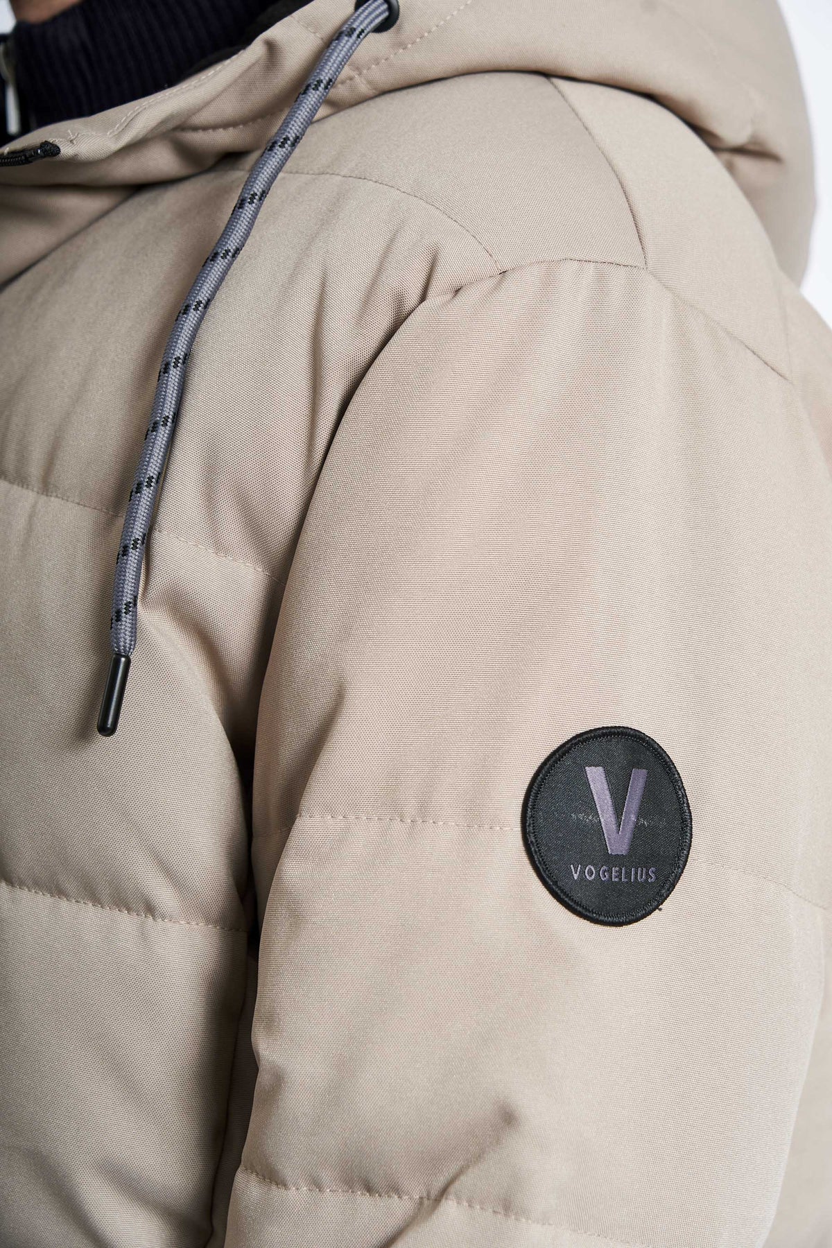 Detaljer: Quiltet design, justerbar hætte, to sidelommer med lynlås, gennemgående lynlås foran