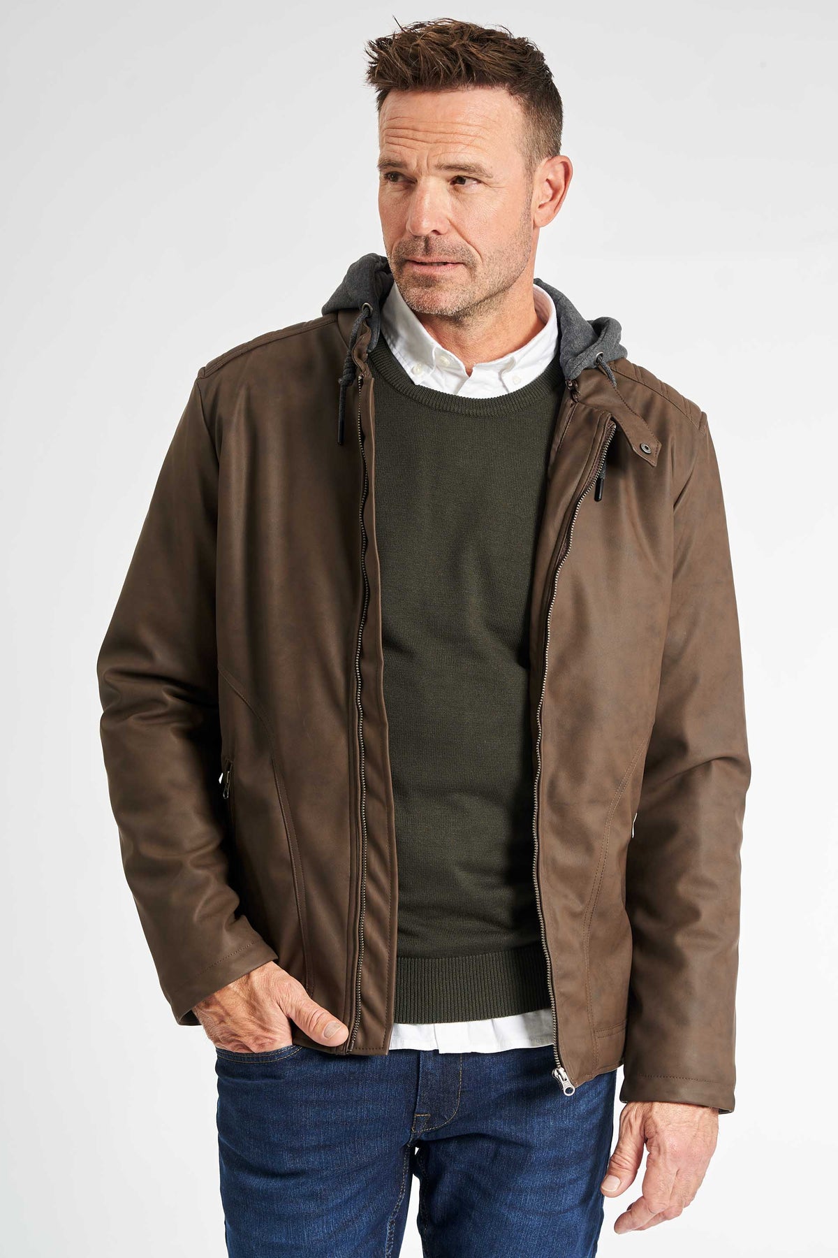 Den matte læderlook-overflade giver et eksklusivt udtryk, mens den bløde polyester-lining sikrer, at jakken føles lige så behagelig, som den ser ud.