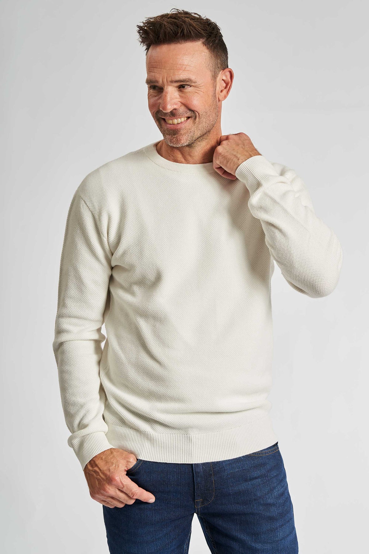 ‘Kalle’ er en klassisk half zip-strik med et moderne twist – skabt i en blød og holdbar bomuldsblanding, der giver både komfort og formstabilitet. Den ribstrikkede struktur og den høje hals med lynlås gør den perfekt til både arbejde og fritid. Brug den over en skjorte for et pænt look eller alene for et mere afslappet udtryk.